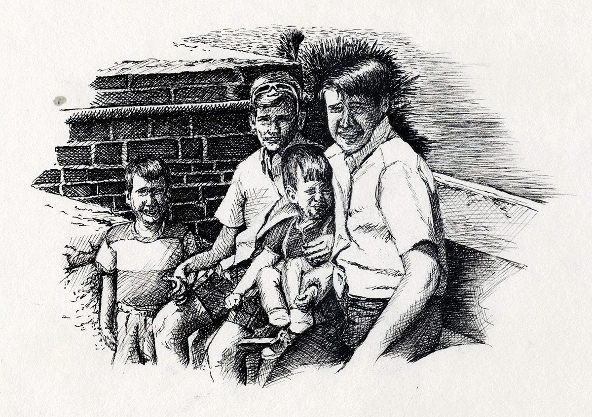 artist friend of my father who drew from the photo hints at the lack of innocence in that brother’s